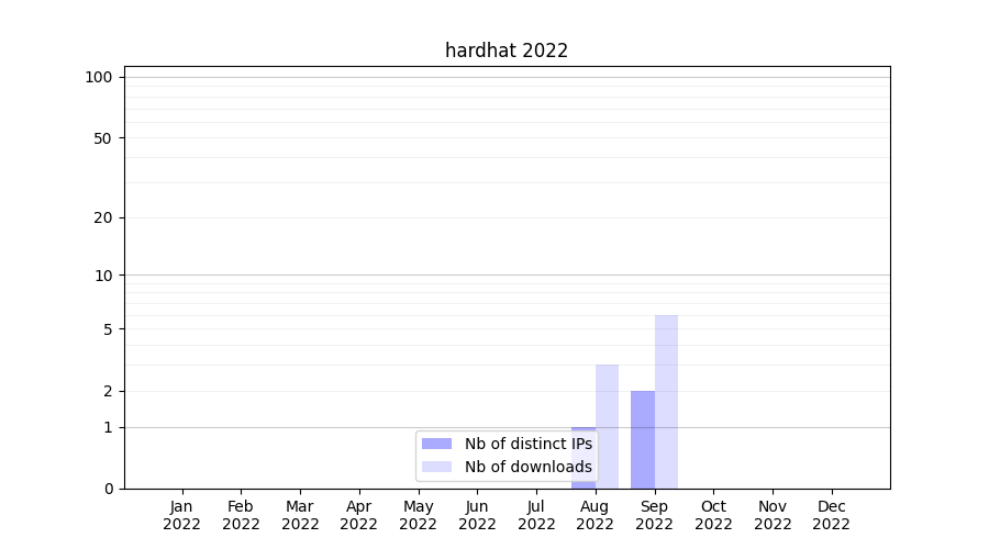 Number of downloads for annotation package hardhat, year by year, from 2025 back to 2014 (years with no downloads are omitted):