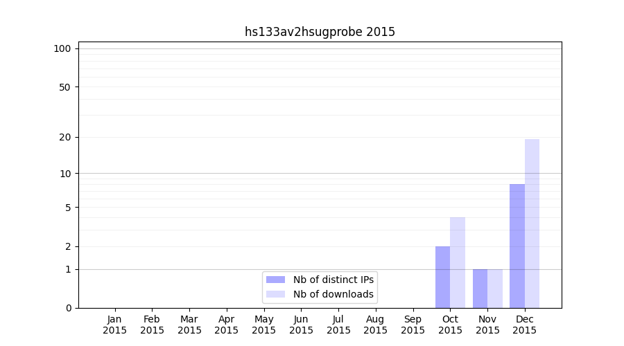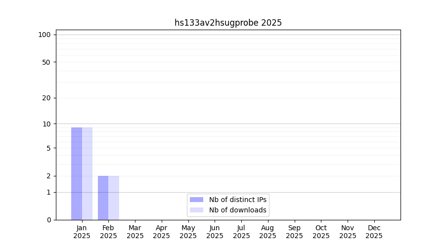Number of downloads for annotation package hs133av2hsugprobe, year by year, from 2025 back to 2014 (years with no downloads are omitted):