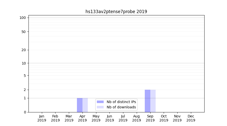 Number of downloads for annotation package hs133av2ptense7probe, year by year, from 2025 back to 2014 (years with no downloads are omitted):