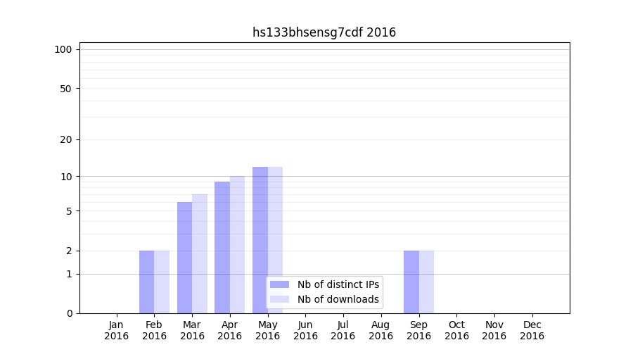 Number of downloads for annotation package hs133bhsensg7cdf, year by year, from 2025 back to 2014 (years with no downloads are omitted):