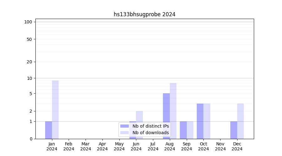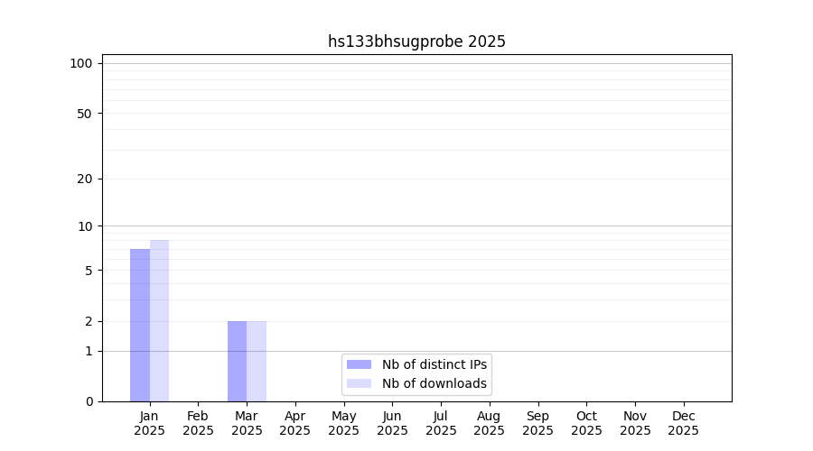 Number of downloads for annotation package hs133bhsugprobe, year by year, from 2025 back to 2014 (years with no downloads are omitted):