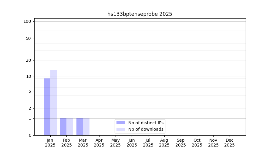 Number of downloads for annotation package hs133bptenseprobe, year by year, from 2025 back to 2014 (years with no downloads are omitted):
