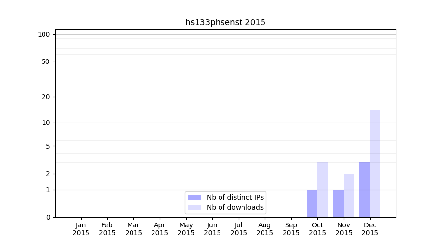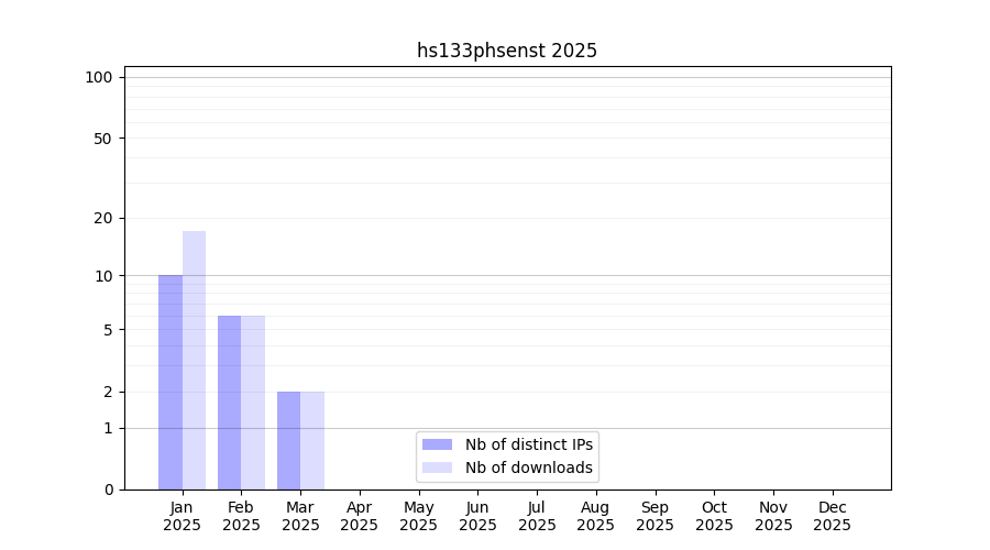 Number of downloads for annotation package hs133phsenst, year by year, from 2025 back to 2014 (years with no downloads are omitted):