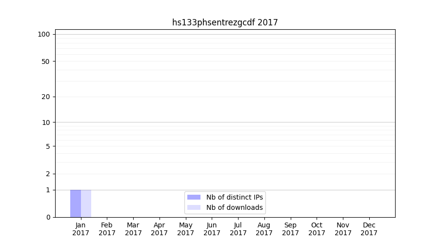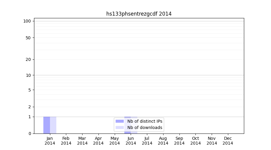 Number of downloads for annotation package hs133phsentrezgcdf, year by year, from 2025 back to 2014 (years with no downloads are omitted):