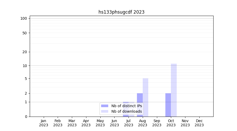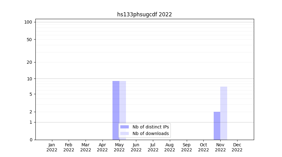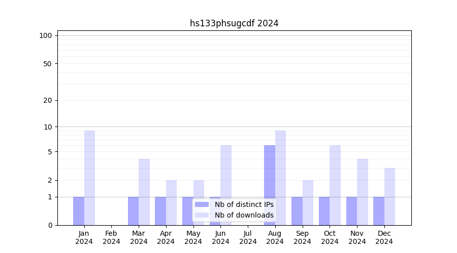 Number of downloads for annotation package hs133phsugcdf, year by year, from 2025 back to 2014 (years with no downloads are omitted):