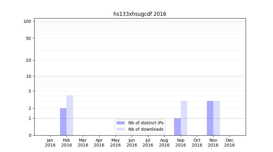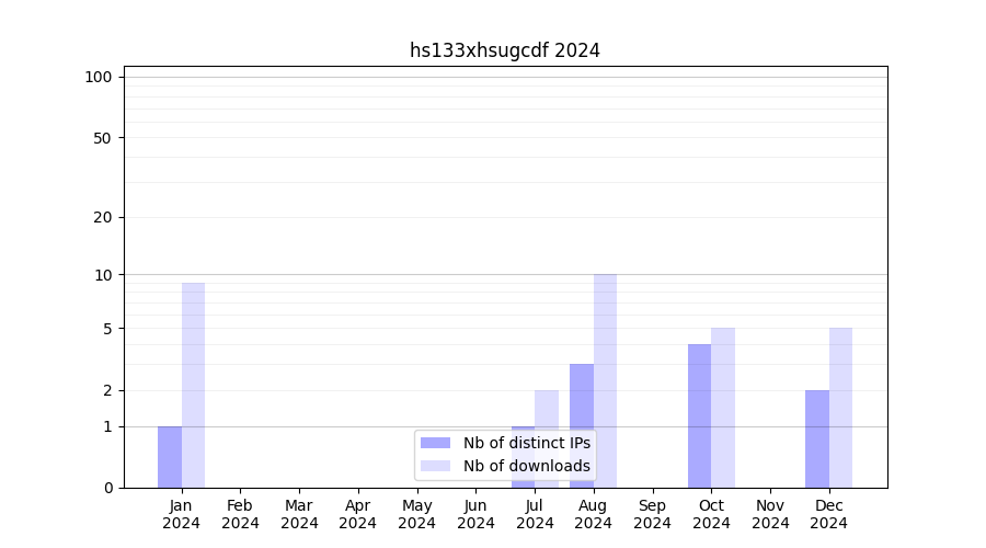 Number of downloads for annotation package hs133xhsugcdf, year by year, from 2025 back to 2014 (years with no downloads are omitted):