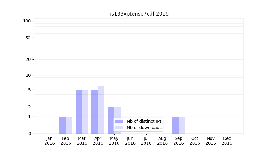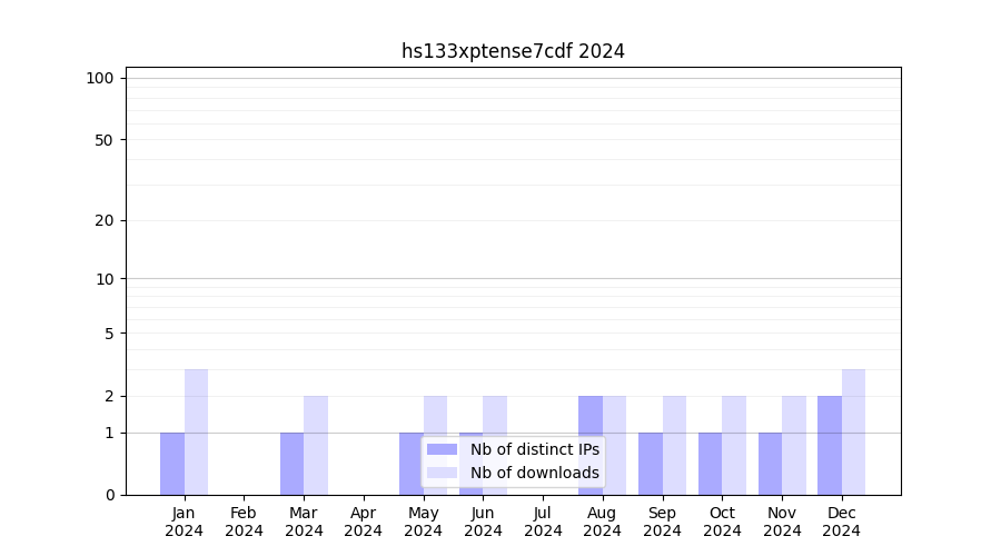 Number of downloads for annotation package hs133xptense7cdf, year by year, from 2025 back to 2014 (years with no downloads are omitted):