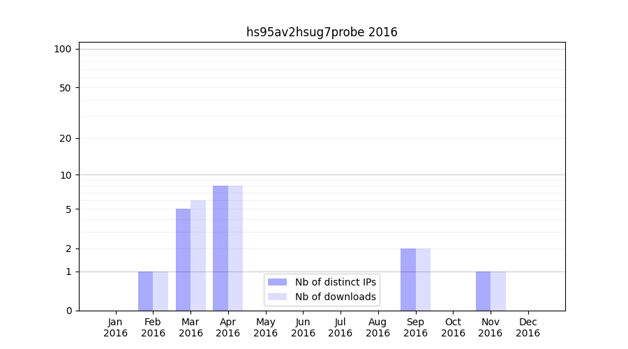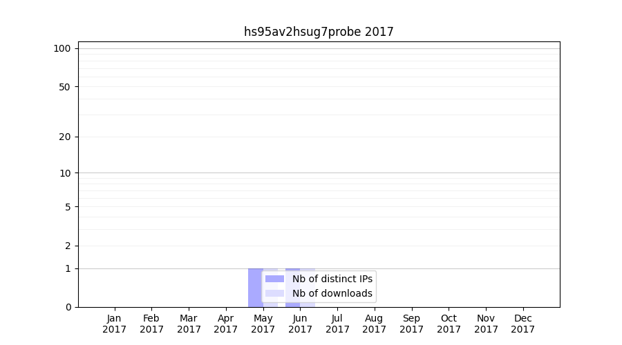Number of downloads for annotation package hs95av2hsug7probe, year by year, from 2025 back to 2014 (years with no downloads are omitted):