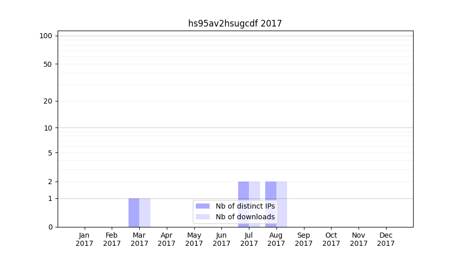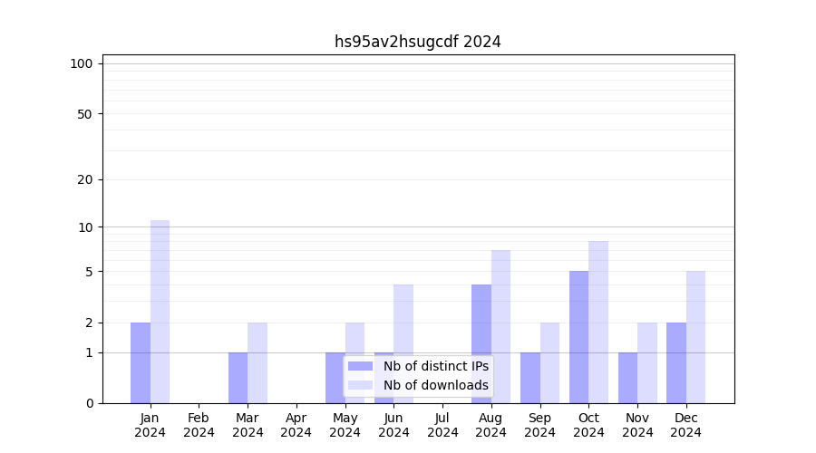 Number of downloads for annotation package hs95av2hsugcdf, year by year, from 2025 back to 2014 (years with no downloads are omitted):