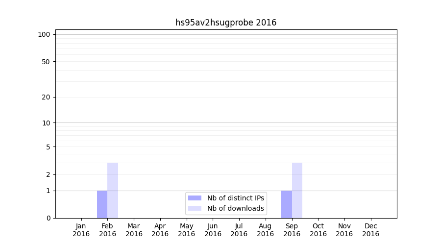 Number of downloads for annotation package hs95av2hsugprobe, year by year, from 2025 back to 2014 (years with no downloads are omitted):