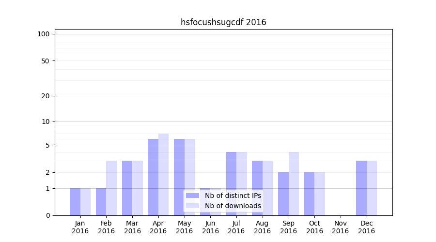 Number of downloads for annotation package hsfocushsugcdf, year by year, from 2025 back to 2014 (years with no downloads are omitted):