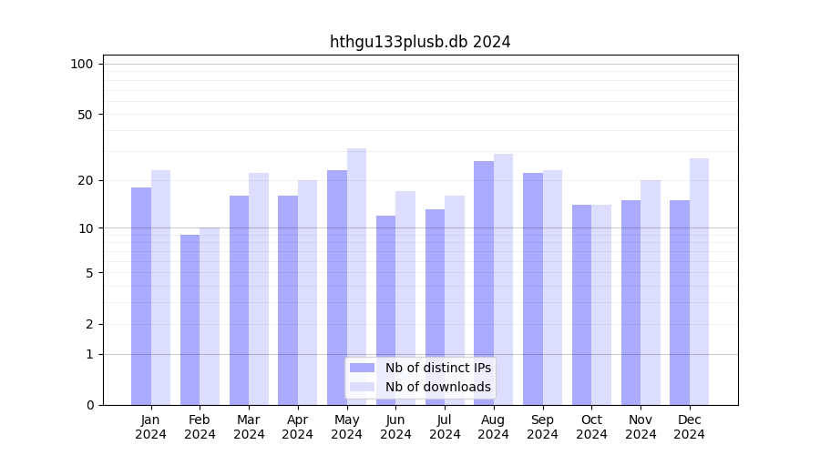 Number of downloads for annotation package hthgu133plusb.db, year by year, from 2025 back to 2014 (years with no downloads are omitted):