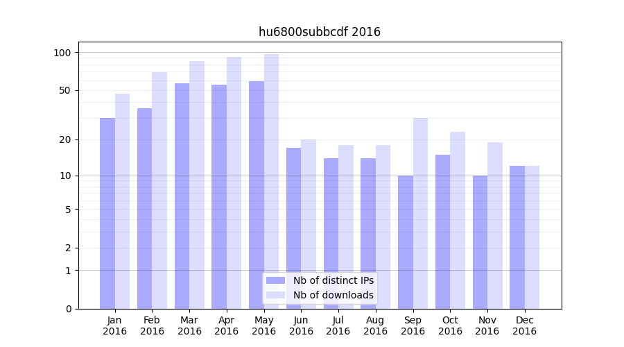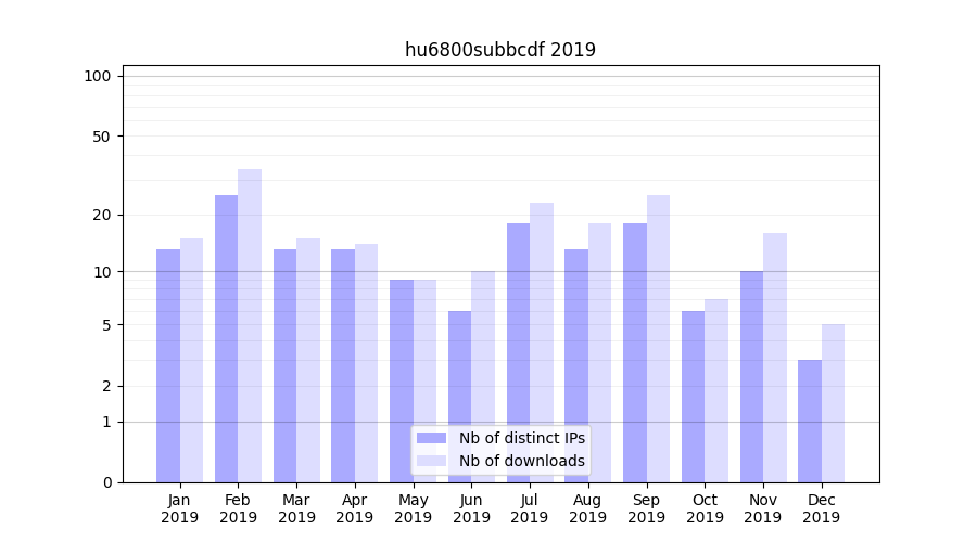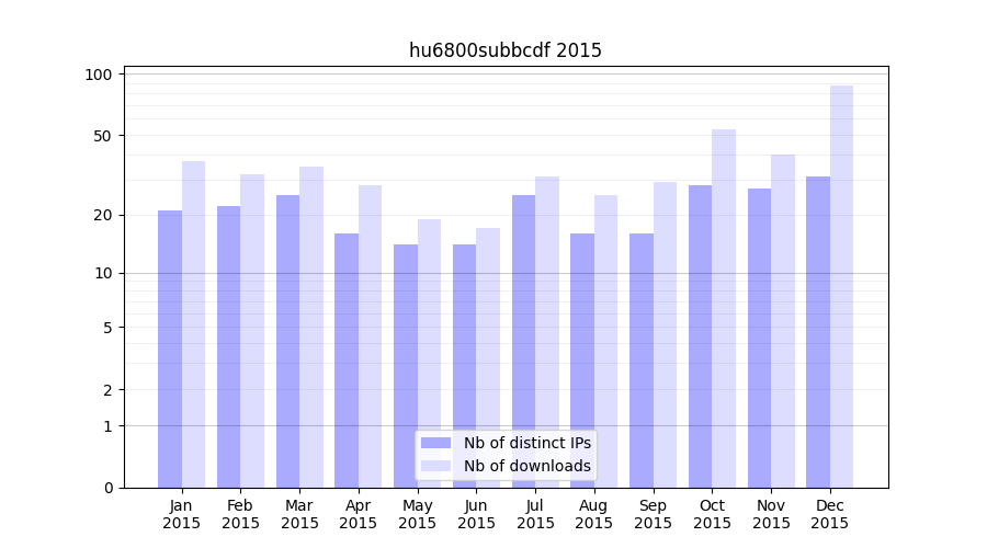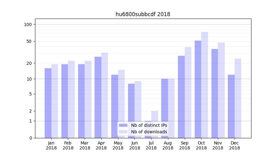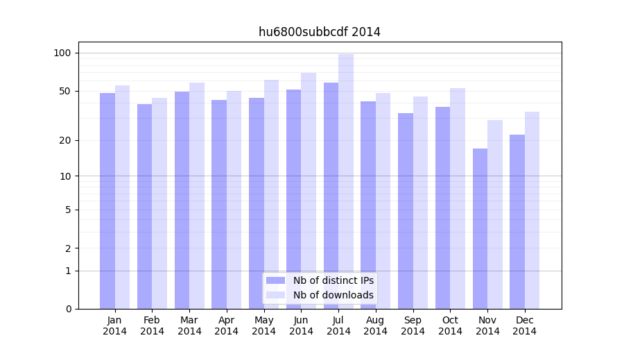Number of downloads for annotation package hu6800subbcdf, year by year, from 2025 back to 2014 (years with no downloads are omitted):