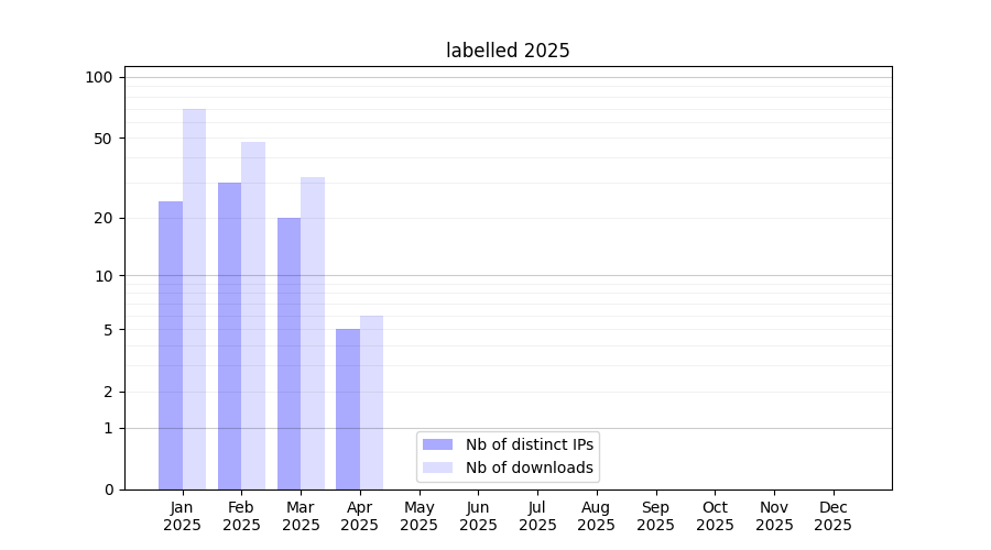 Number of downloads for annotation package labelled, year by year, from 2025 back to 2014 (years with no downloads are omitted):