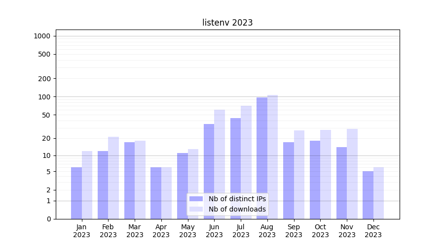 | Month | Nb of distinct IPs | Nb of downloads |