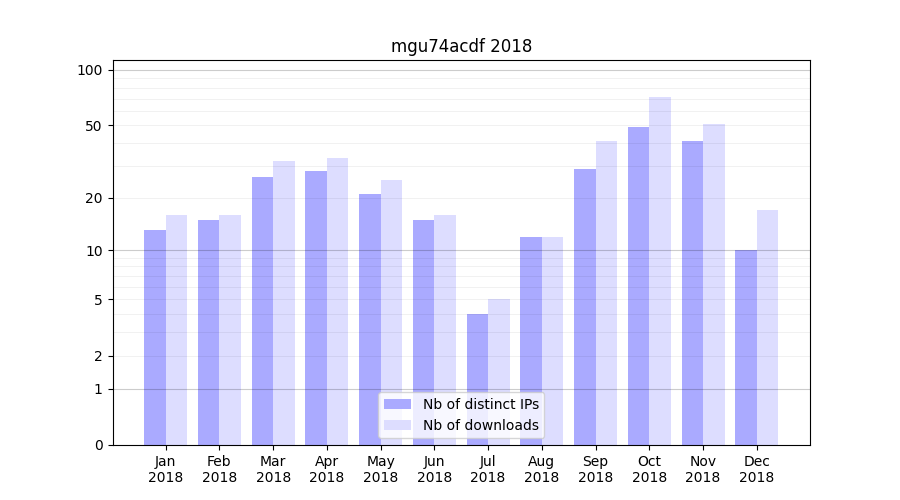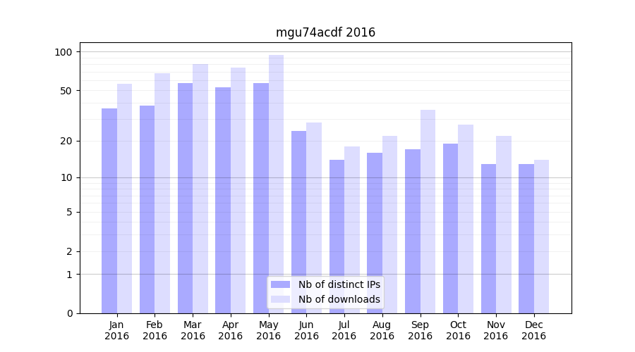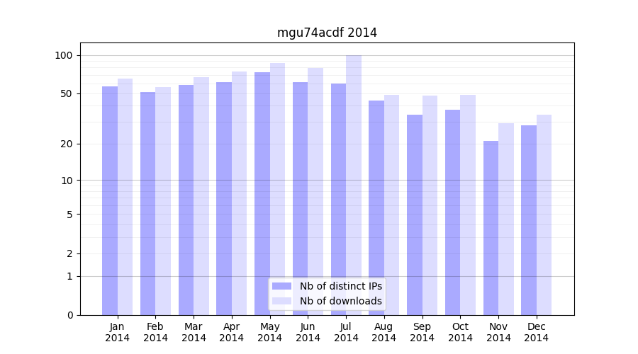 Number of downloads for annotation package mgu74acdf, year by year, from 2025 back to 2014 (years with no downloads are omitted):