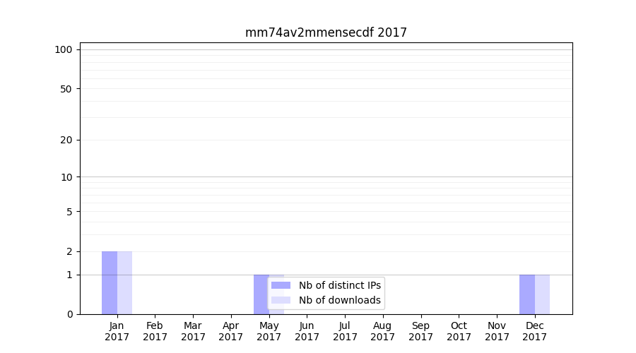 Number of downloads for annotation package mm74av2mmensecdf, year by year, from 2025 back to 2014 (years with no downloads are omitted):