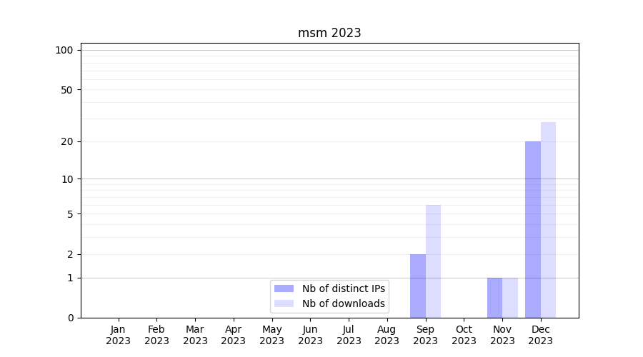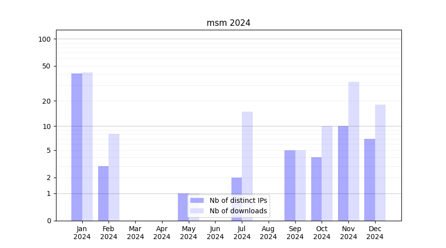 | Month | Nb of distinct IPs | Nb of downloads |