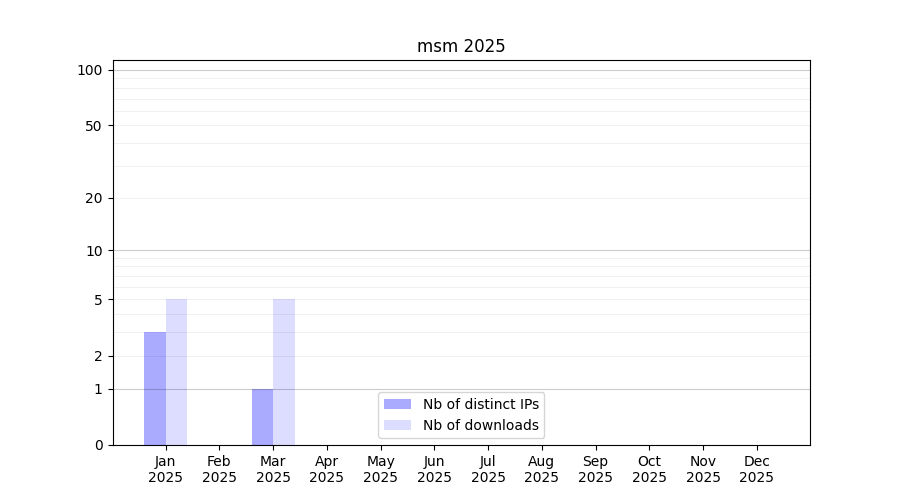Number of downloads for annotation package msm, year by year, from 2025 back to 2014 (years with no downloads are omitted):