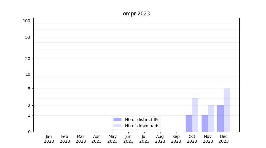 Number of downloads for annotation package ompr, year by year, from 2025 back to 2014 (years with no downloads are omitted):