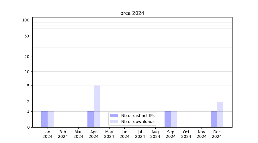 Number of downloads for annotation package orca, year by year, from 2025 back to 2014 (years with no downloads are omitted):