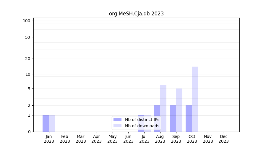Number of downloads for annotation package org.MeSH.Cja.db, year by year, from 2025 back to 2014 (years with no downloads are omitted):