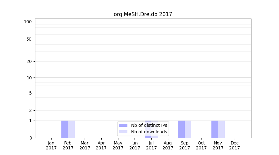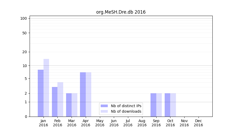 Number of downloads for annotation package org.MeSH.Dre.db, year by year, from 2025 back to 2014 (years with no downloads are omitted):