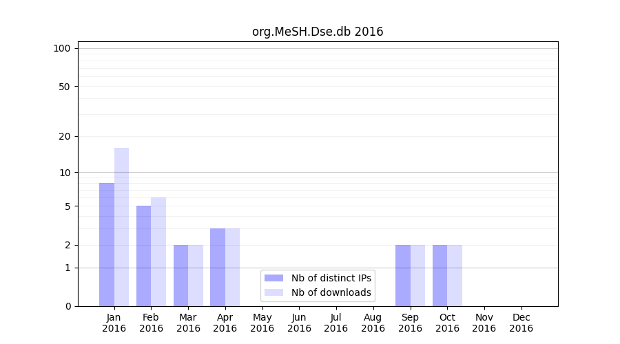 Number of downloads for annotation package org.MeSH.Dse.db, year by year, from 2025 back to 2014 (years with no downloads are omitted):