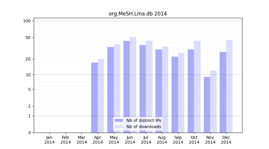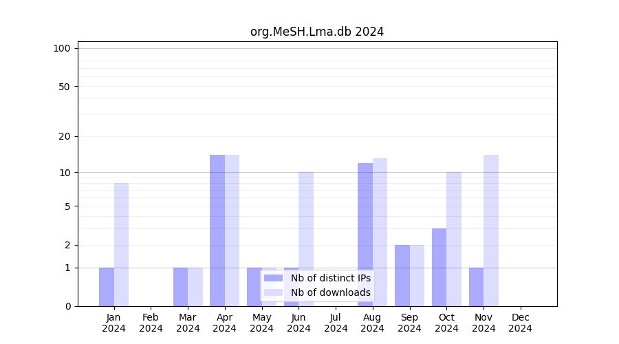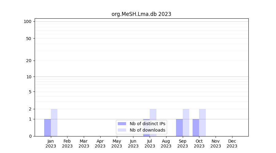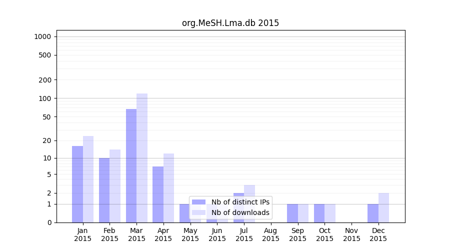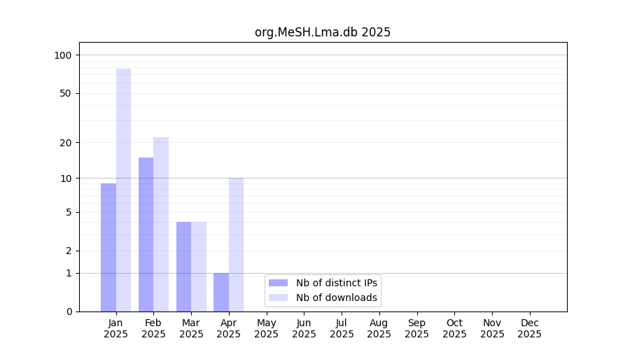 Number of downloads for annotation package org.MeSH.Lma.db, year by year, from 2025 back to 2014 (years with no downloads are omitted):