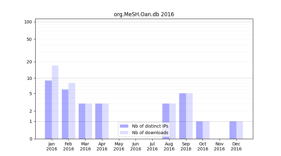 Number of downloads for annotation package org.MeSH.Oan.db, year by year, from 2025 back to 2014 (years with no downloads are omitted):
