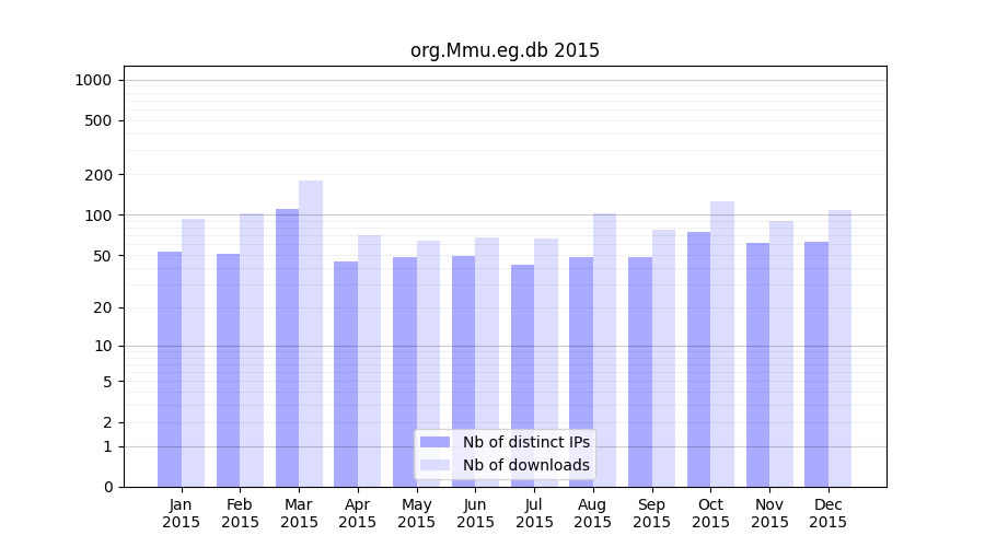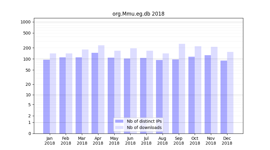 Number of downloads for annotation package org.Mmu.eg.db, year by year, from 2025 back to 2014 (years with no downloads are omitted):