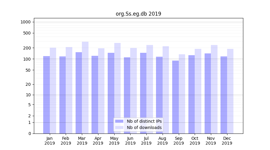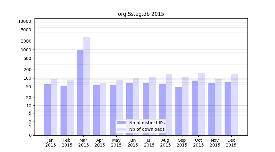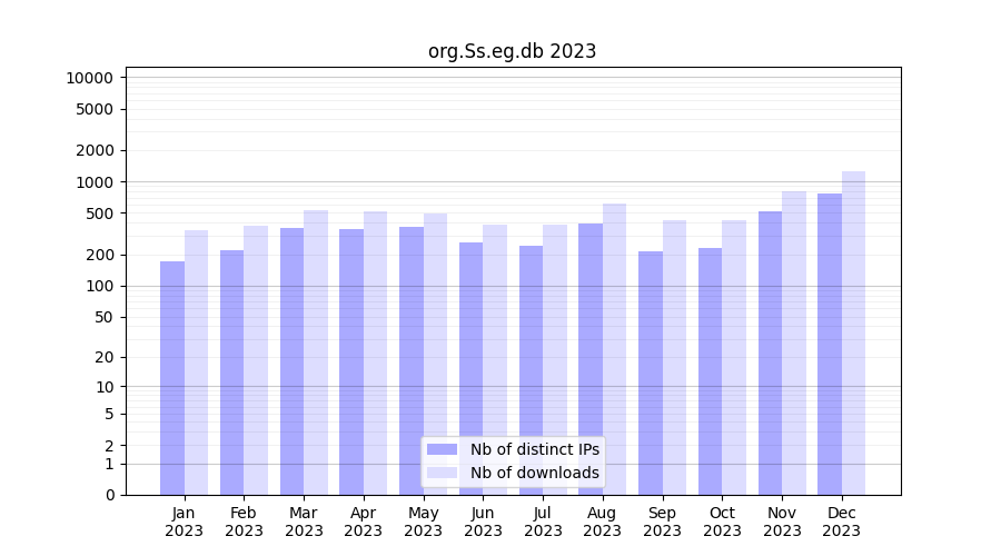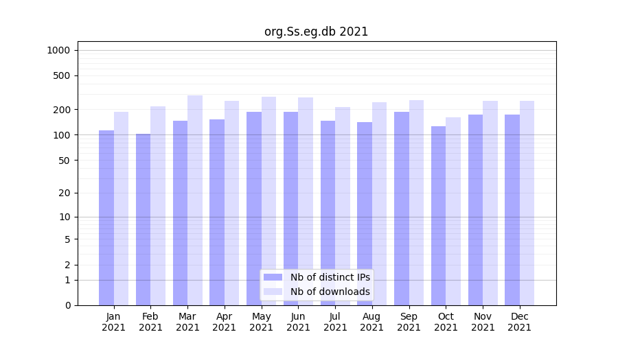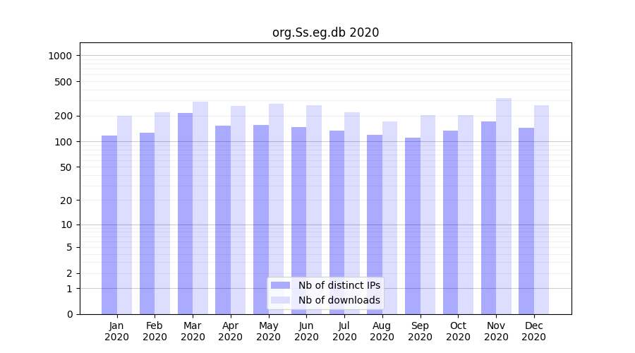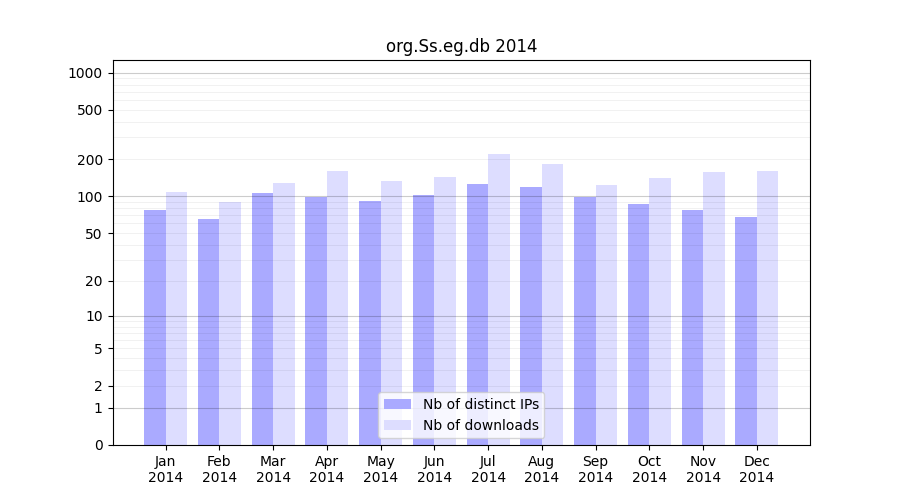 Number of downloads for annotation package org.Ss.eg.db, year by year, from 2025 back to 2014 (years with no downloads are omitted):
