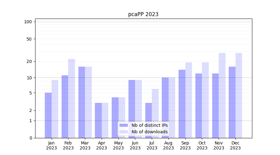 | Month | Nb of distinct IPs | Nb of downloads |