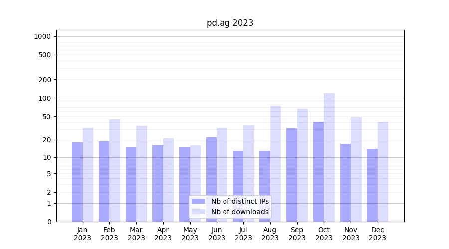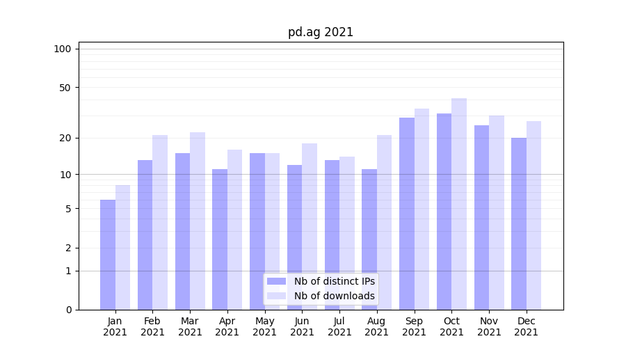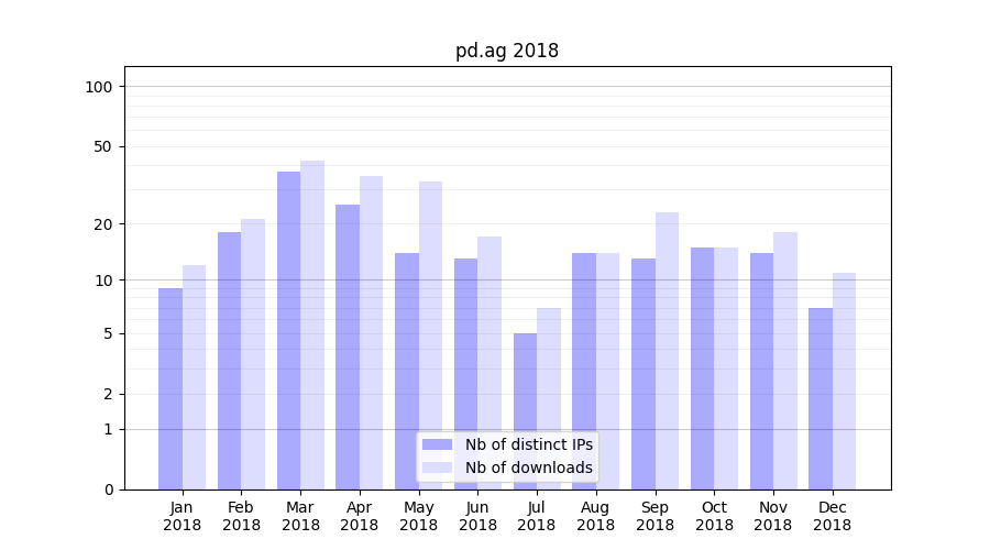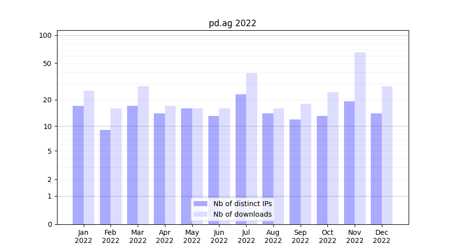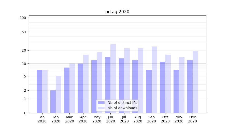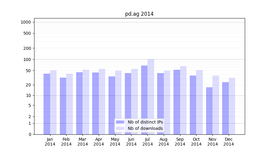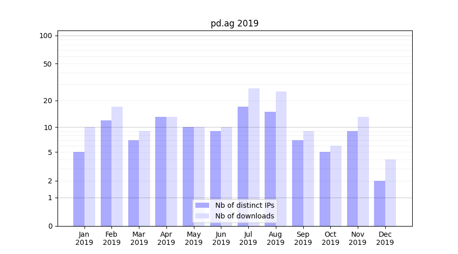 Number of downloads for annotation package pd.ag, year by year, from 2025 back to 2014 (years with no downloads are omitted):