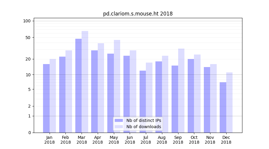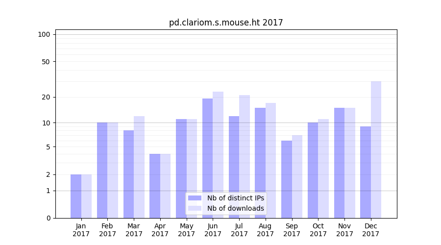 | Month | Nb of distinct IPs | Nb of downloads |
