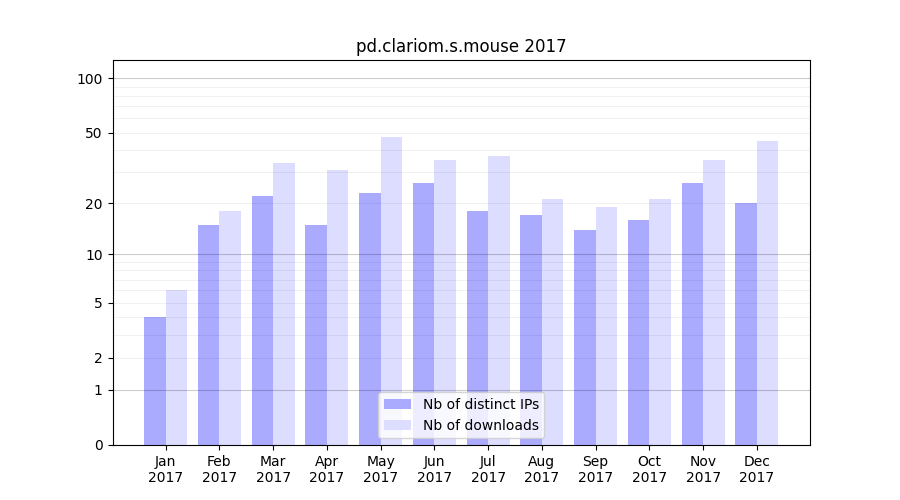 | Month | Nb of distinct IPs | Nb of downloads |