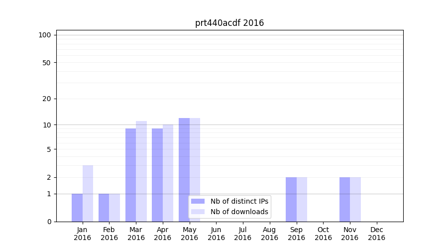Number of downloads for annotation package prt440acdf, year by year, from 2025 back to 2014 (years with no downloads are omitted):
