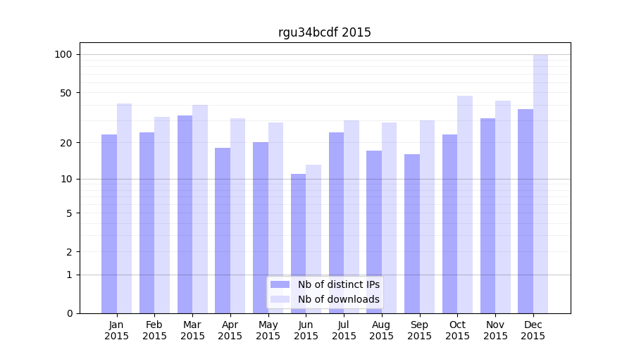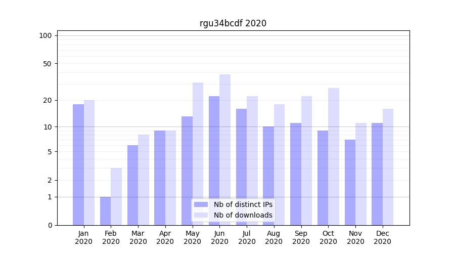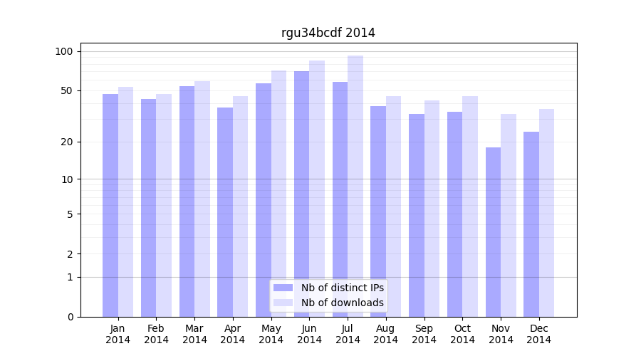 Number of downloads for annotation package rgu34bcdf, year by year, from 2025 back to 2014 (years with no downloads are omitted):
