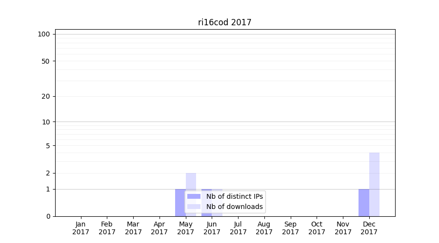 Number of downloads for annotation package ri16cod, year by year, from 2025 back to 2014 (years with no downloads are omitted):