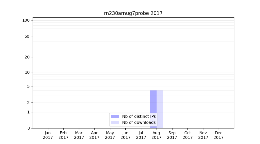 Number of downloads for annotation package rn230arnug7probe, year by year, from 2025 back to 2014 (years with no downloads are omitted):
