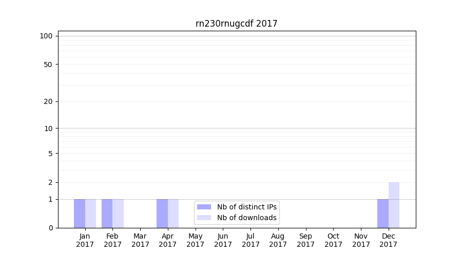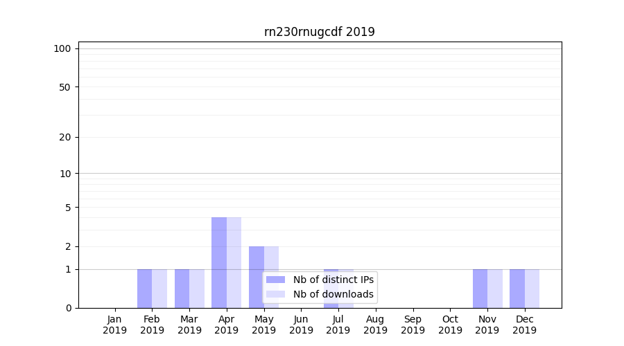 Number of downloads for annotation package rn230rnugcdf, year by year, from 2025 back to 2014 (years with no downloads are omitted):