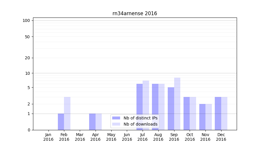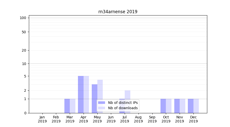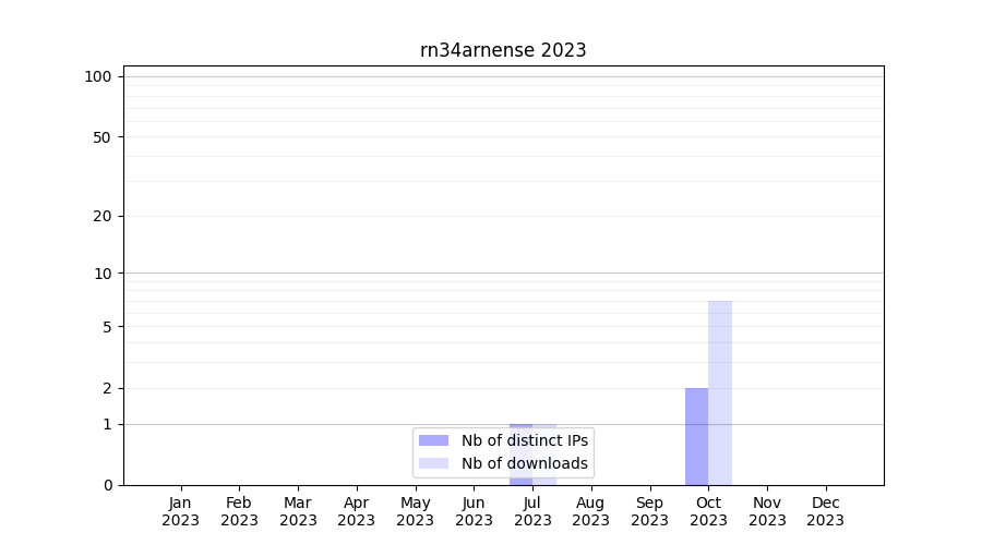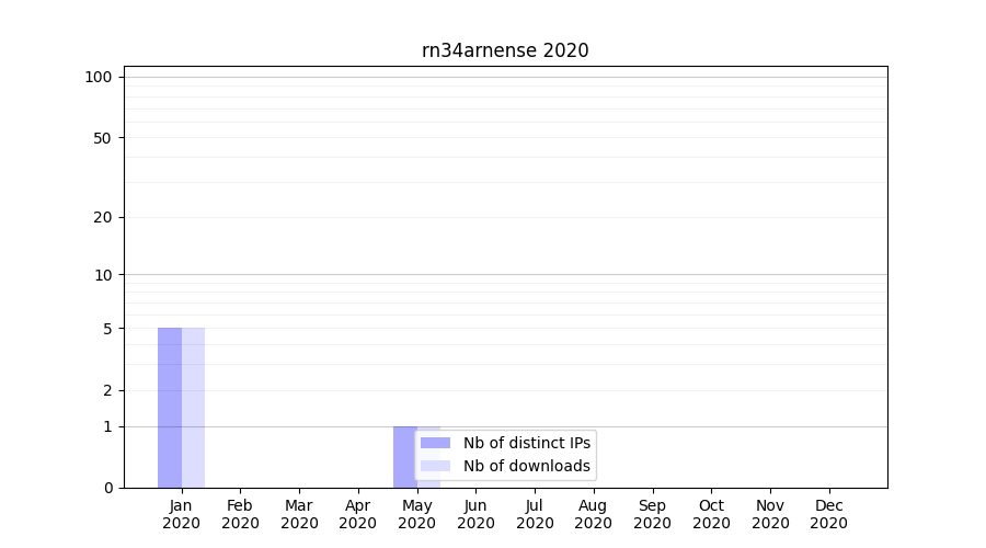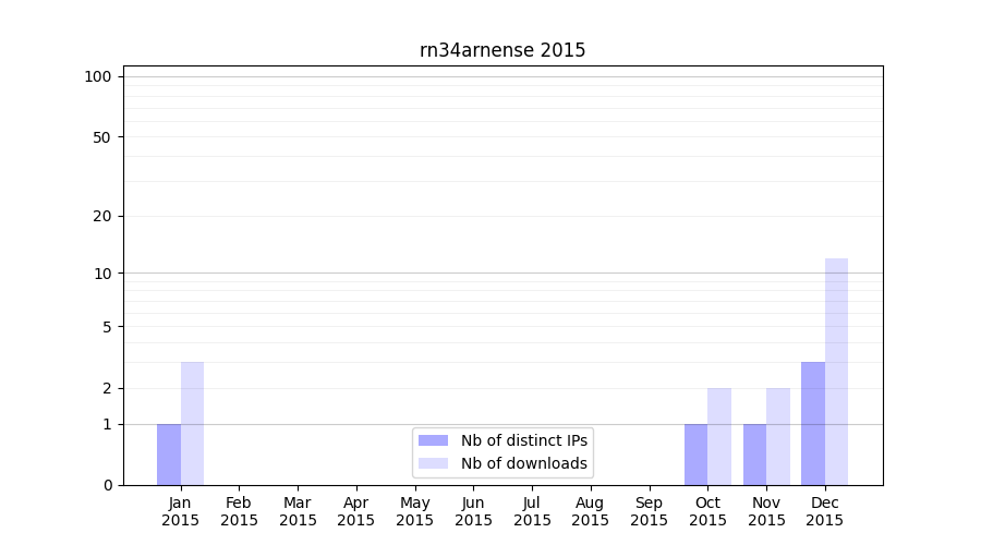Number of downloads for annotation package rn34arnense, year by year, from 2025 back to 2014 (years with no downloads are omitted):