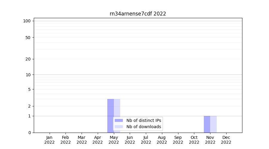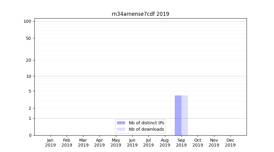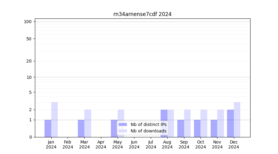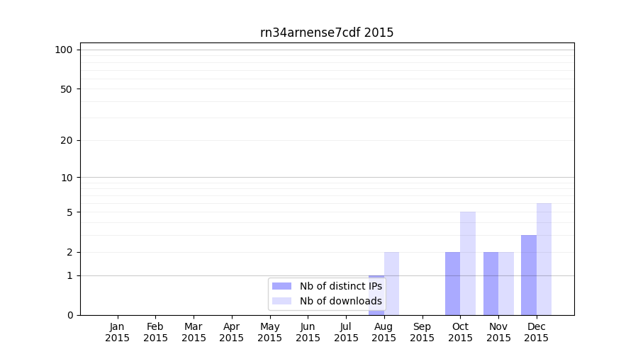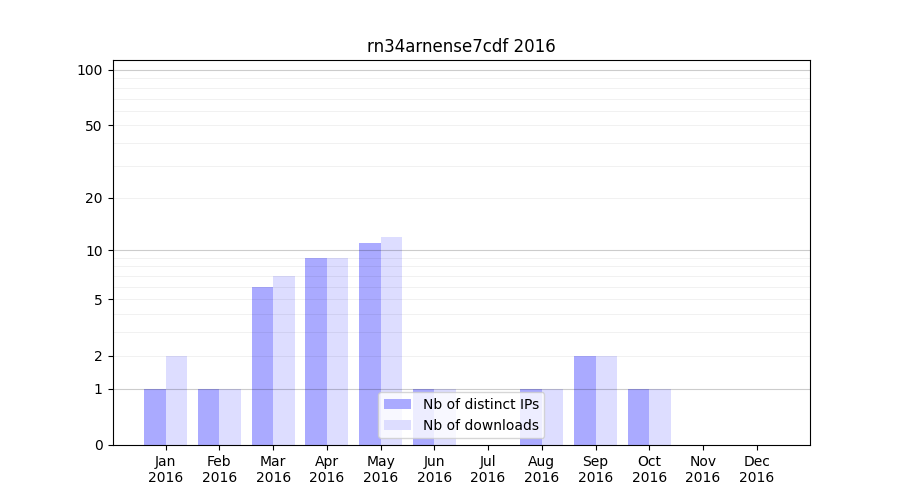 Number of downloads for annotation package rn34arnense7cdf, year by year, from 2025 back to 2014 (years with no downloads are omitted):