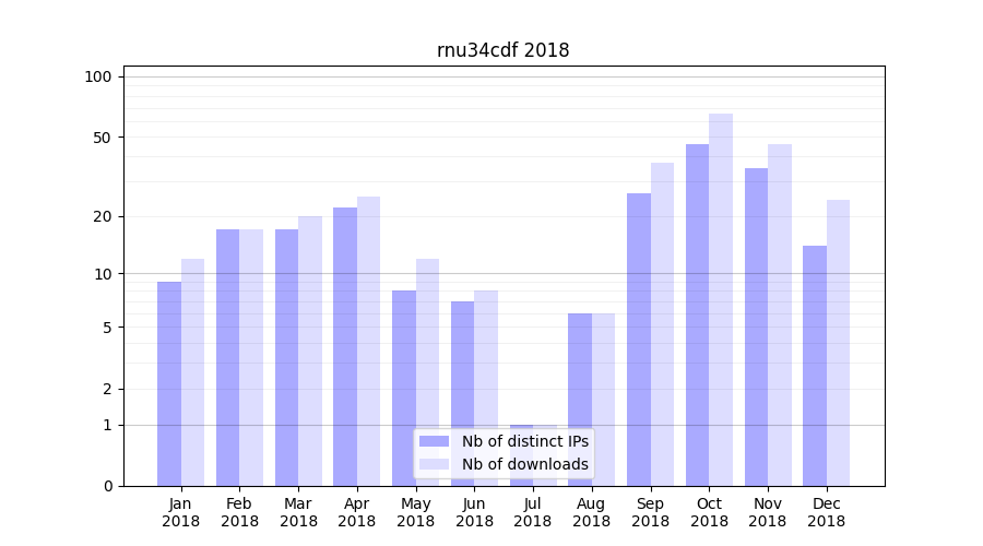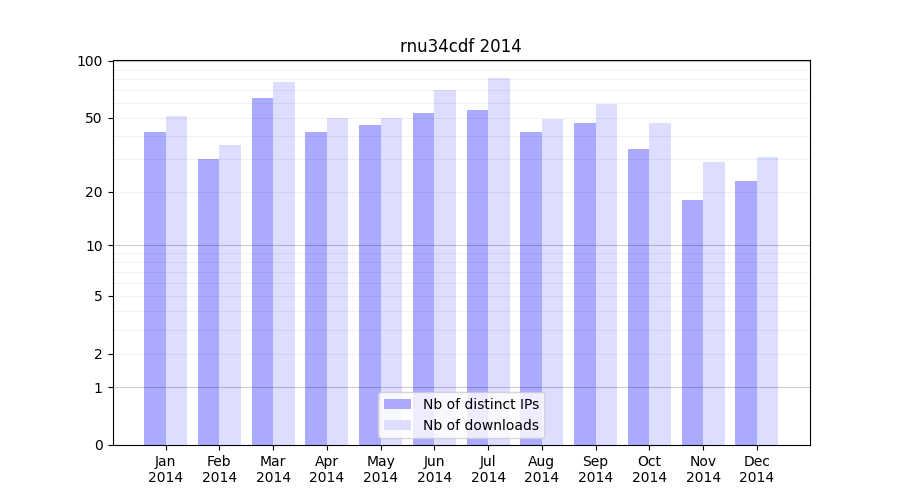 Number of downloads for annotation package rnu34cdf, year by year, from 2025 back to 2014 (years with no downloads are omitted):