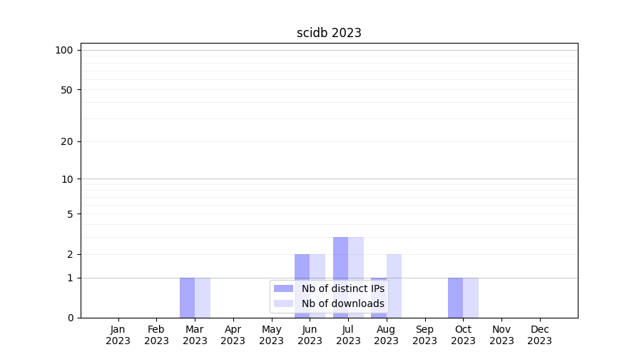 Number of downloads for annotation package scidb, year by year, from 2025 back to 2014 (years with no downloads are omitted):
