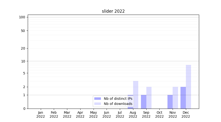 Number of downloads for annotation package slider, year by year, from 2025 back to 2014 (years with no downloads are omitted):