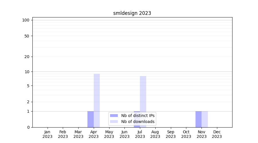 Number of downloads for annotation package smldesign, year by year, from 2025 back to 2014 (years with no downloads are omitted):