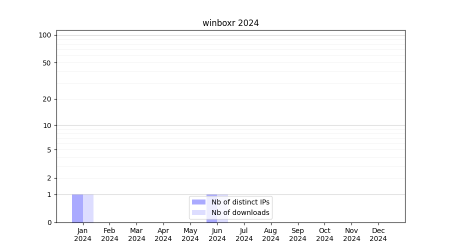 Number of downloads for annotation package winboxr, year by year, from 2025 back to 2014 (years with no downloads are omitted):