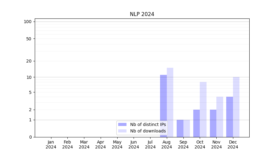 Number of downloads for workflow package NLP, year by year, from 2025 back to 2015 (years with no downloads are omitted):