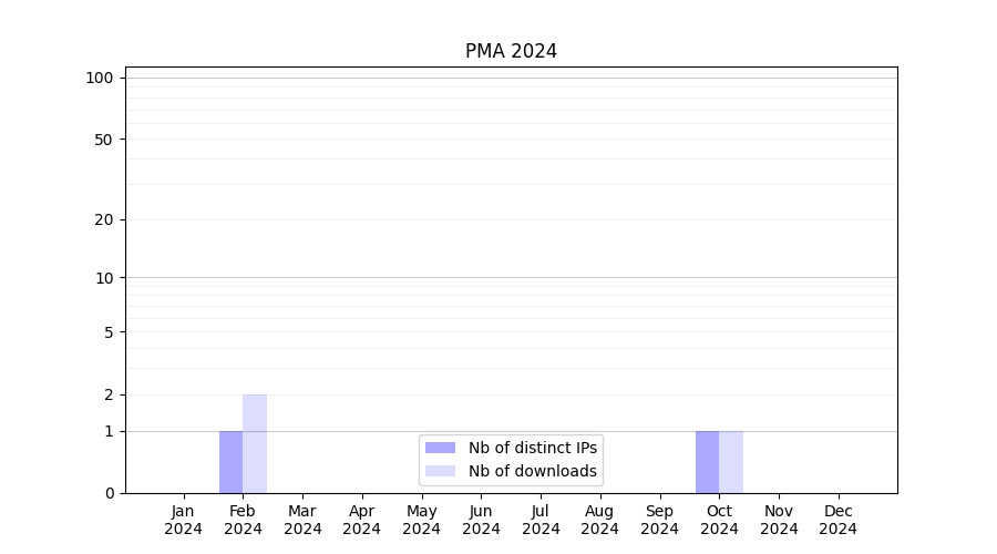 Number of downloads for workflow package PMA, year by year, from 2025 back to 2015 (years with no downloads are omitted):